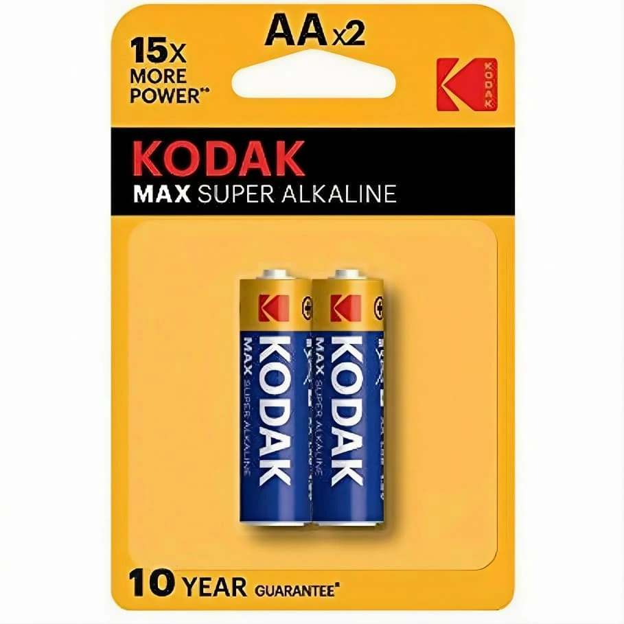 Kodak Alkaline Max AA Batteries are designed to provide strong and reliable power for a wide range of everyday electronic devices. Operating at 1.5 volts, they use Alkaline Max technology to deliver stable performance and longer-lasting energy compared to standard alkaline batteries. These batteries feature improved leakage resistance and a long shelf life, helping to protect electronic devices. AA batteries are commonly used in remote controls, toys, flashlights, clocks, wireless keyboards and mice, and other household electronics. The pack contains 2 batteries, making it ideal for quick replacement or backup use.