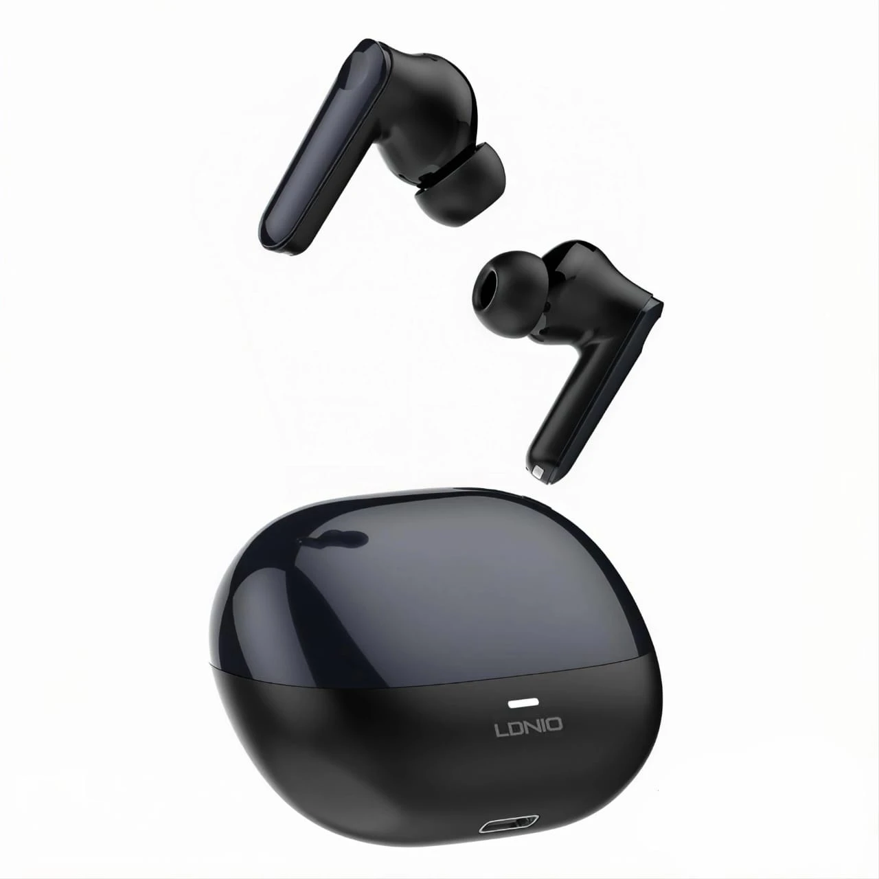 The LDNIO EARPHONE T06 wireless earphones use Bluetooth 5.3 for stable and clear audio during music playback and calls. The ergonomic in‑ear design ensures comfortable wear, while touch controls let you manage music and calls without touching your phone. Featuring noise reduction to improve call clarity and audio quality, the earbuds deliver up to 7 hours of music playtime on a single charge and up to 30 hours using the 500 mAh charging case. They charge via USB‑C and offer a wireless range of approximately 10 meters.