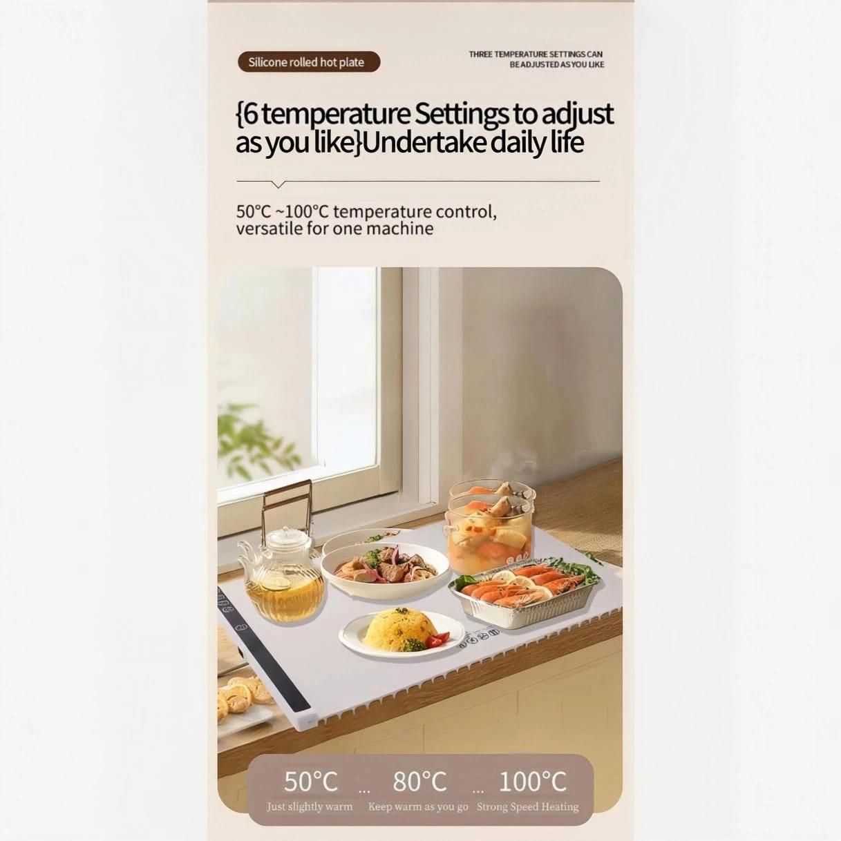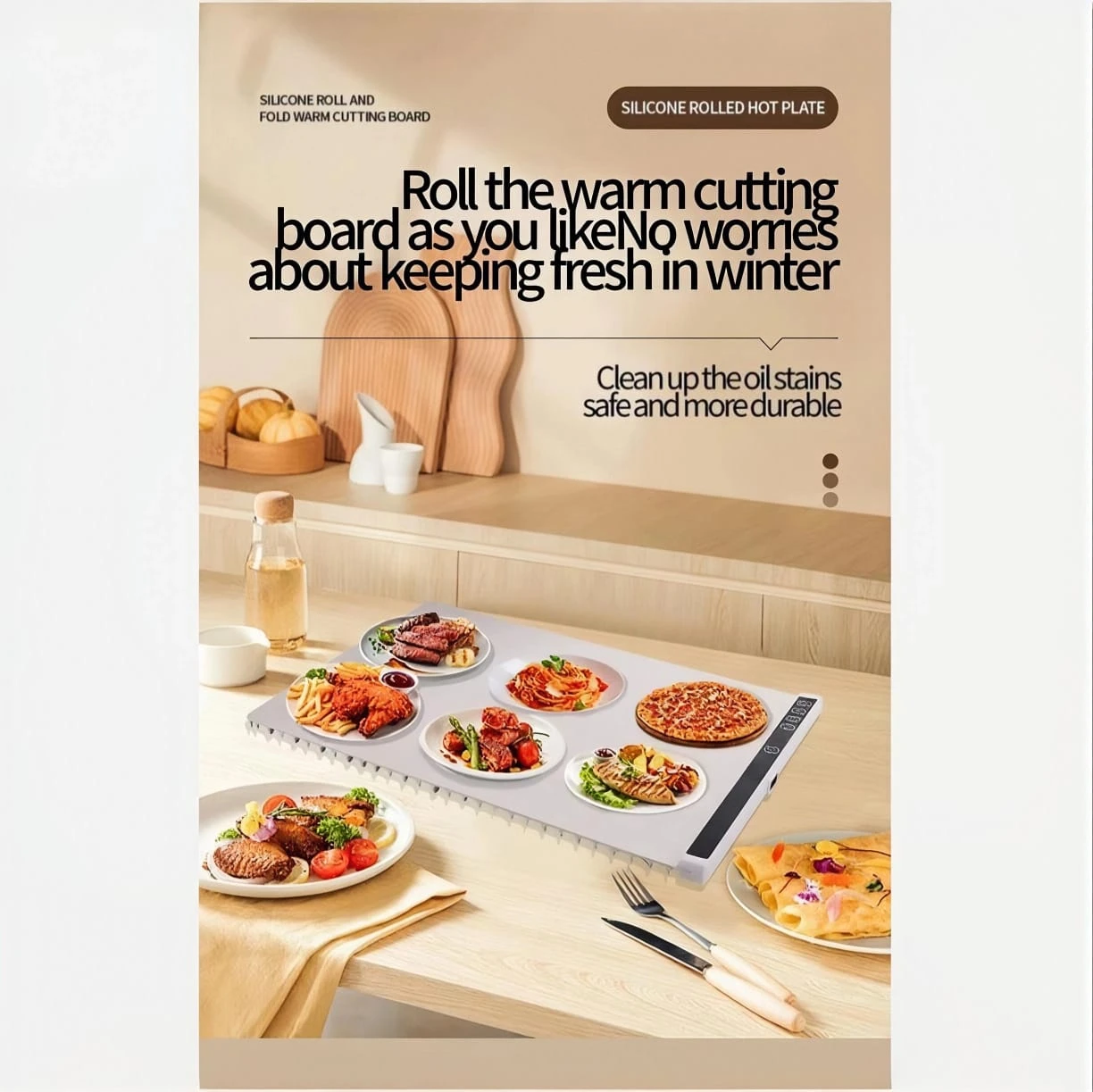 Enjoy quick and efficient heating with the Foldable Silicone Table Mat that features a fast heating function. Designed as the perfect solution for keeping food warm during family gatherings or outdoor activities, this mat ensures a convenient and efficient way to enjoy your meals. Made from advanced silicone material, it offers long-lasting performance and helps to retain heat for extended periods. Its foldable design allows for easy storage, making it ideal for home use or on-the-go.