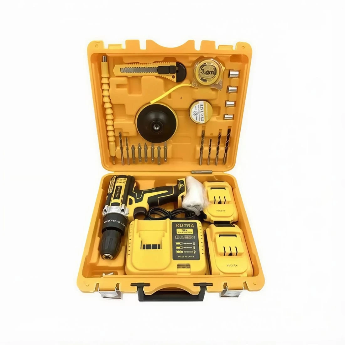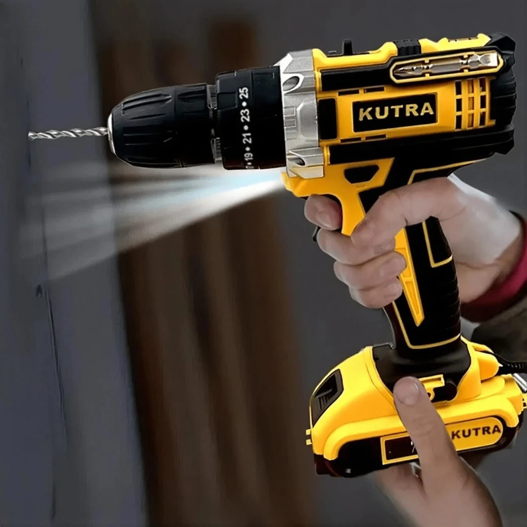 The KUTRA 48V Brushless Cordless Drill is a high-performance power tool designed for efficient drilling and fastening tasks. It features a brushless motor that delivers higher power, improved efficiency, and longer motor life with reduced heat generation. It is suitable for drilling and screw-driving in wood, metal, and plastic. The cordless design provides maximum mobility, while variable speed control and strong torque make it ideal for both DIY and professional use. Most versions include a rechargeable battery and LED work light for better visibility.