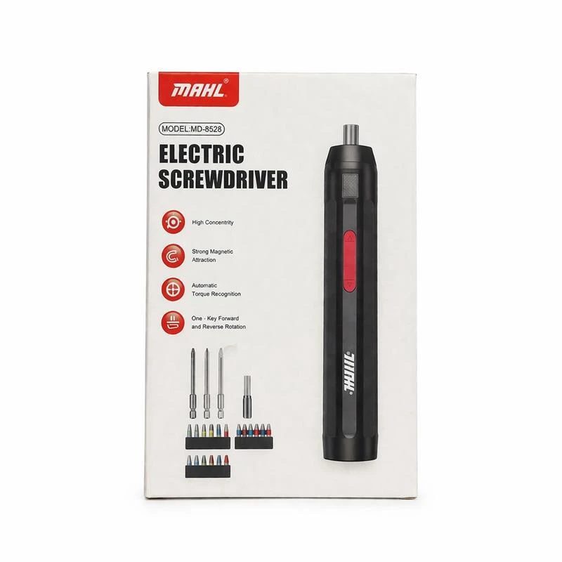 The MDHL MD-8528 electric screwdriver is designed to make fastening and loosening tasks faster and more efficient. It features strong torque with automatic torque recognition, along with a magnetic design for secure bit holding. It supports forward and reverse rotation with a single button. Comes with multiple screwdriver bits for various applications, and a lightweight ergonomic design for comfortable use. Ideal for home use, device maintenance, and general repair tasks.