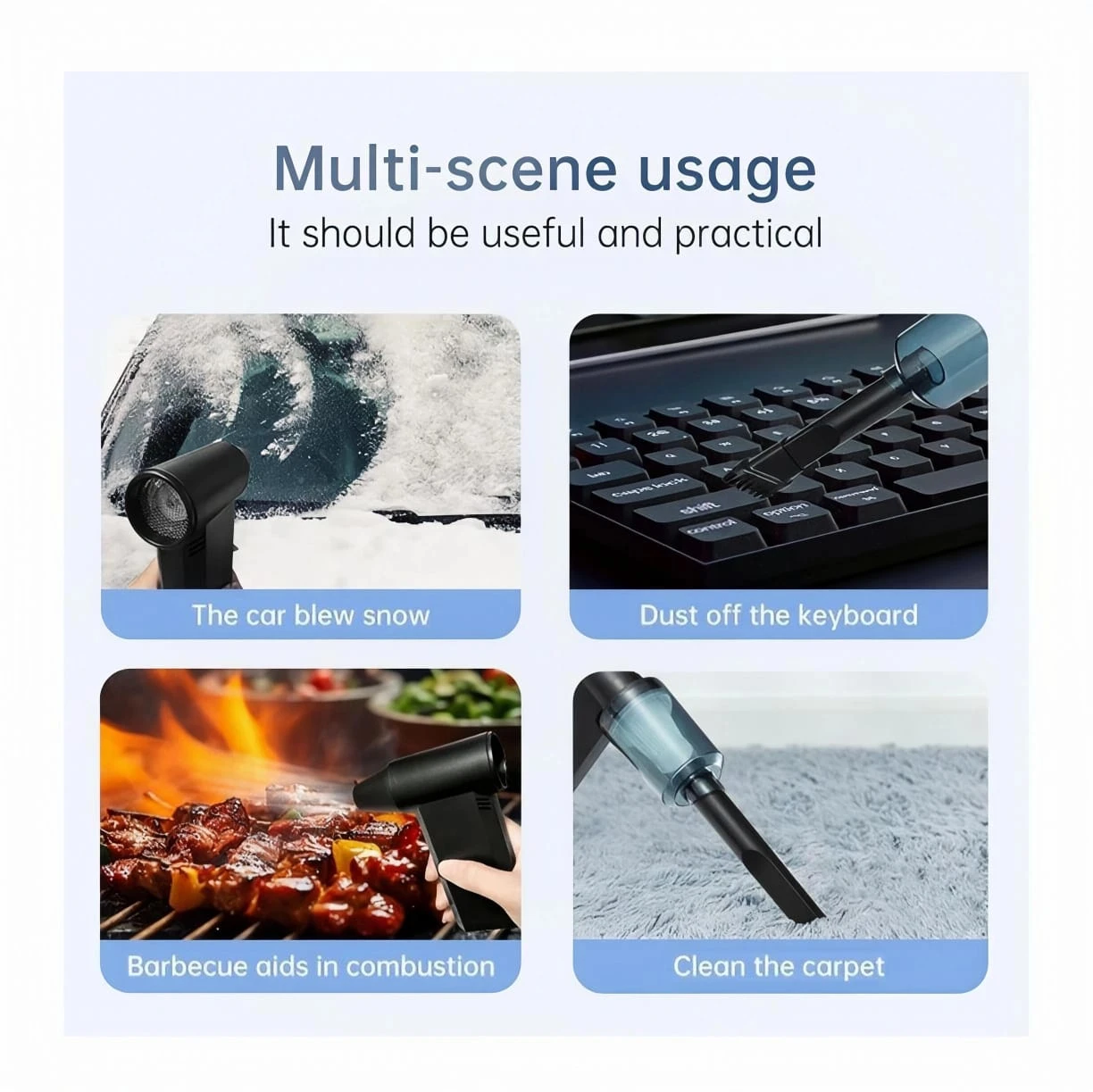 Experience powerful cleaning performance with the MDHL Turbocharged Handheld Vacuum Fan, designed for high-speed airflow and effective dust removal. This handheld vacuum features a strong 4000mAh battery, a brushless motor, and a high output of 8.4V, providing long-lasting performance and fast recharging in under 3 hours. Its sleek and modern design, combined with practical functionality, makes it an ideal gift for birthdays, anniversaries, or any occasion – perfect for tech enthusiasts, gamers, office workers, or anyone who values smart and efficient tools.