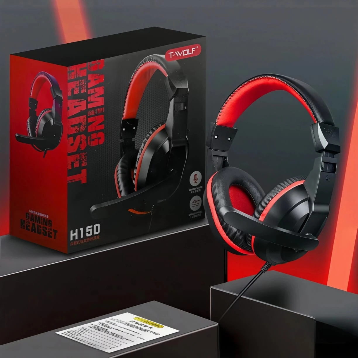 The T-WOLF H150 Wired Gaming Headset is designed to deliver clear sound and comfortable performance for gaming and everyday use. It features large audio drivers for immersive sound and an integrated microphone for clear communication during games or calls. The headset uses dual 3.5mm connectors for audio and microphone, making it compatible with PCs and laptops. Its soft ear cushions and lightweight design provide comfort during long gaming sessions.
