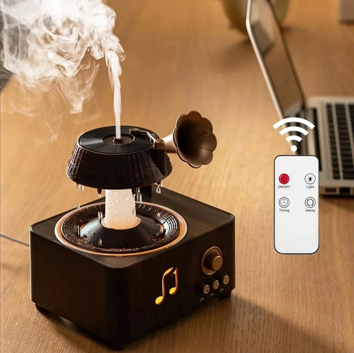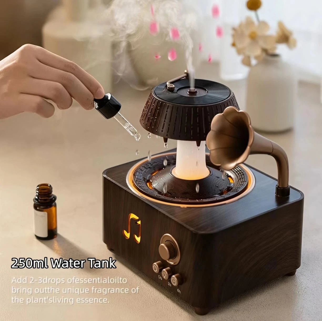 This Ultrasonic Humidifier and Aroma Diffuser features an innovative water drop design with a 250ml capacity, adding elegance and comfort to your space. Operating with ultrasonic waves, it efficiently disperses aromas and boasts a raindrop rotation feature that creates a calming and relaxing atmosphere. With the included remote control, you can easily adjust the device settings from a distance, catering to your needs. This device not only serves as a humidifier and aroma diffuser but also works to improve air quality in any room, making it an ideal choice for daily use.